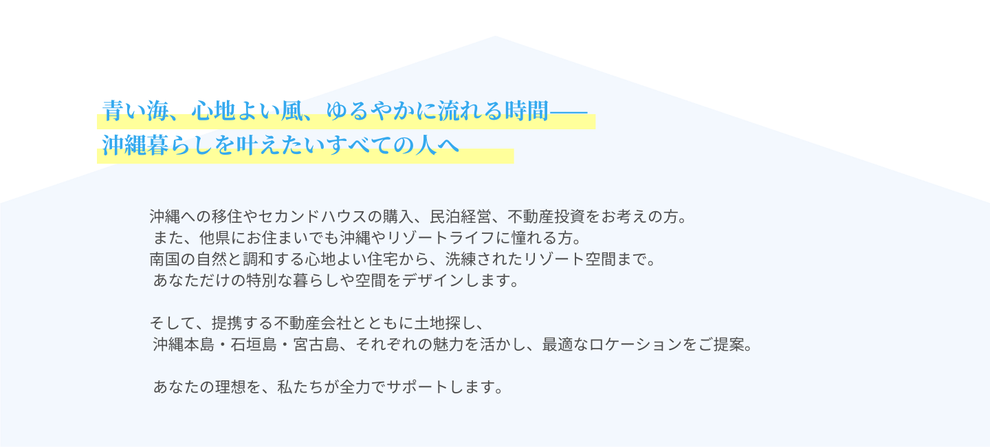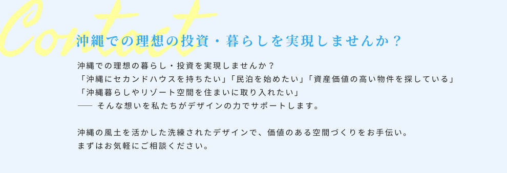 沖縄ならではの自然や文化を取り入れながら、あなただけの特別な空間 をご提案します。