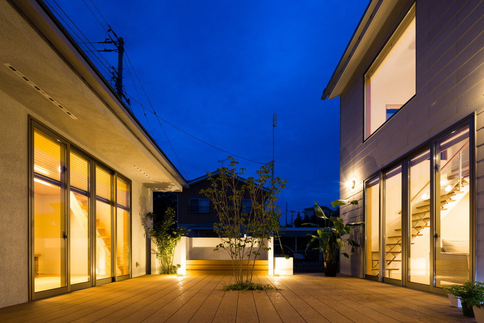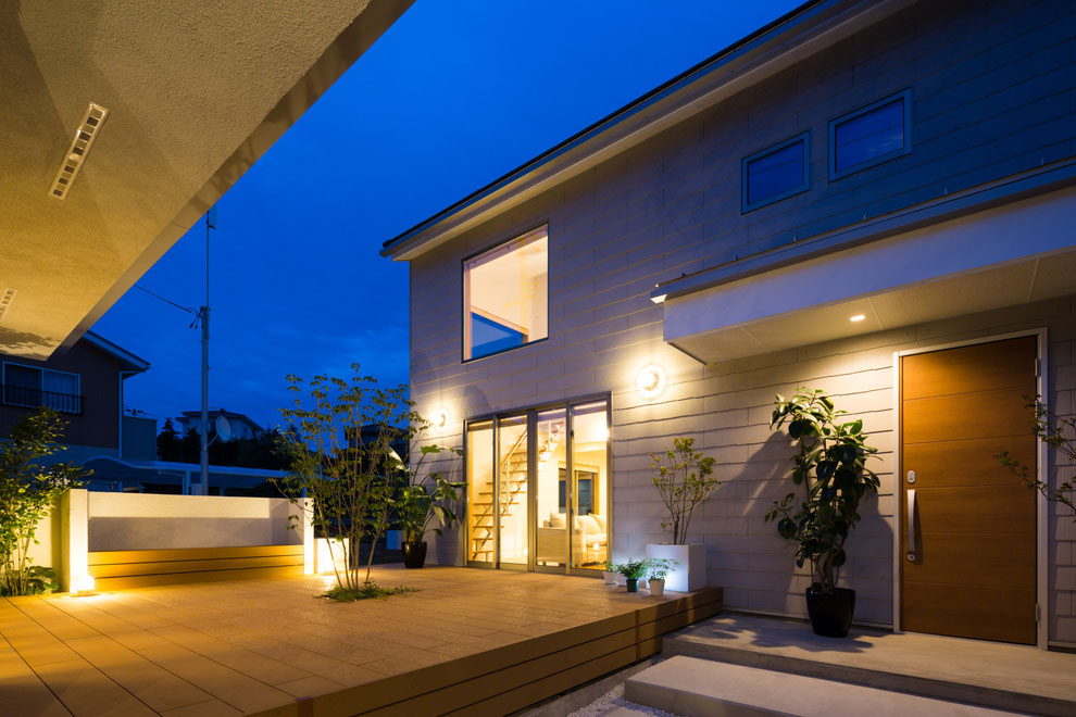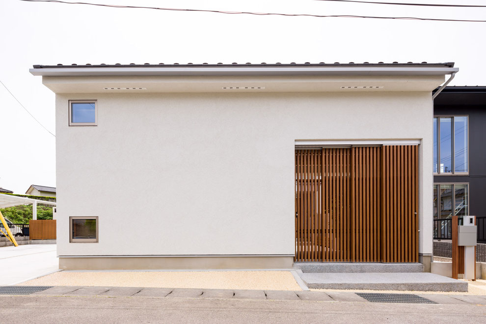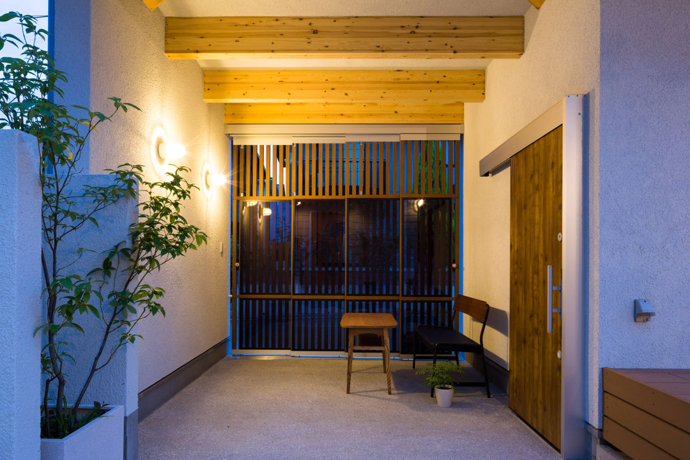 門を地域コミュニティへのポータルとして、また、パブリックとプライバシーをつなぐ接点てとしてデザインしました。単なる 出入口としての門ではなく、時には近隣とのコミュニケーション空間となり、時にはプライベートな癒し 空間となる、「離れ」としても活用。さらに、門と母屋の間の中庭は、「アウトドアリビング」として楽しめます。「門のある家」は、新しい暮らしの価値を創造します。